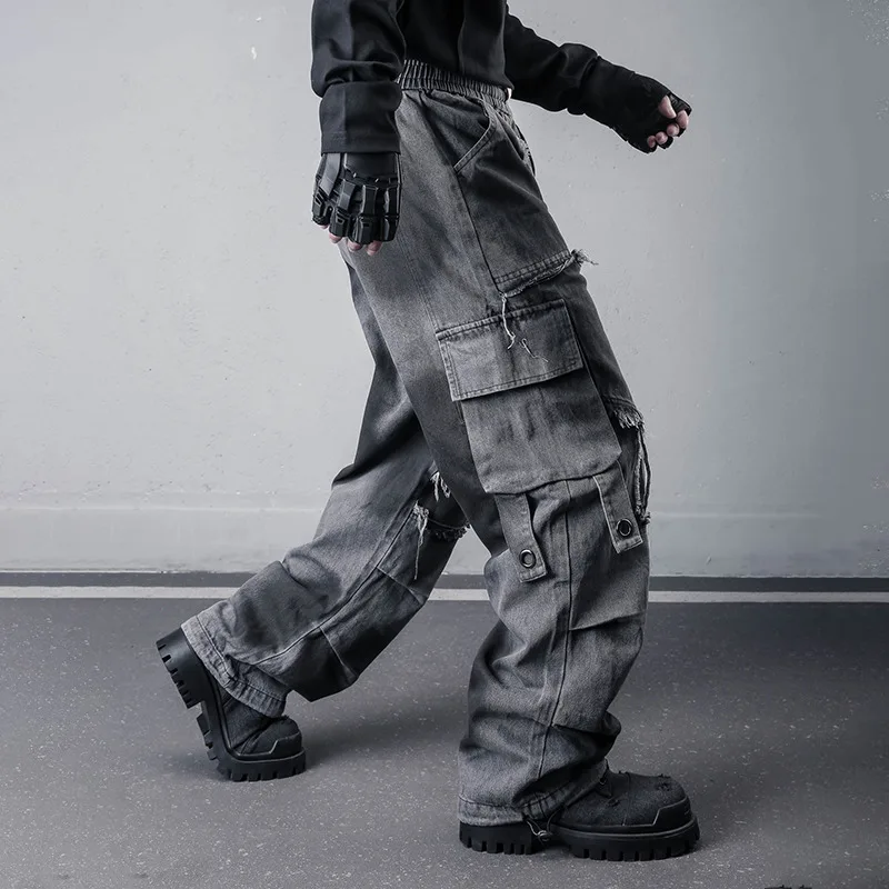 Pair with an oversized black tee, VOIDWEAR ritual hoodie, or washed windbreaker; finish with utility sneakers.