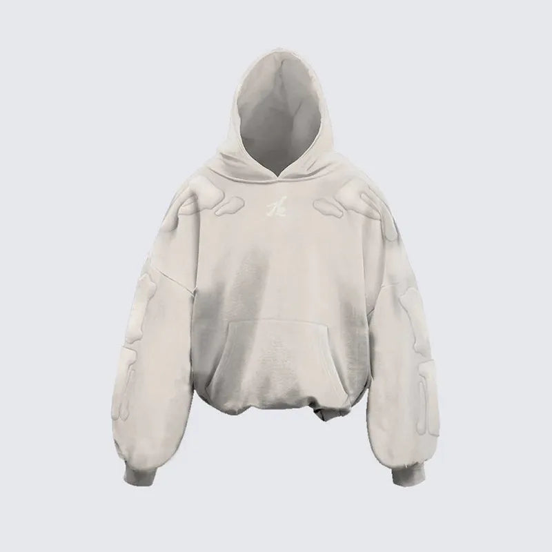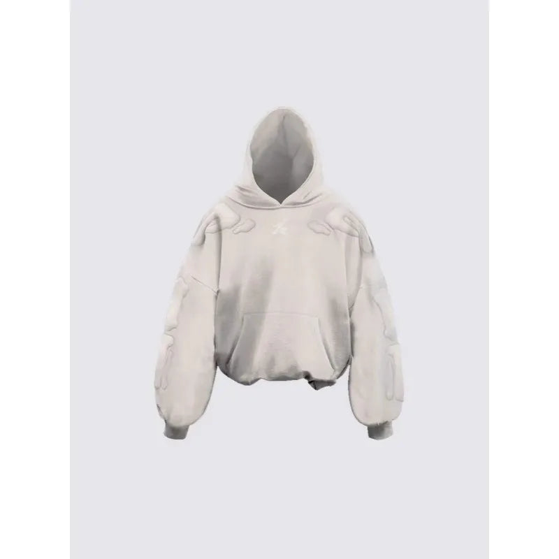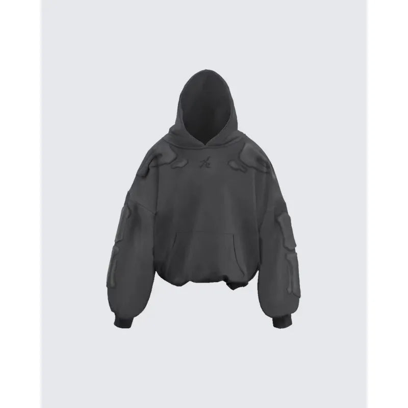 Drawn from Harajuku and Y2K distortion energy, this oversized foam-print hoodie merges gothic grit with VOIDWEAR’s minimalist utility. The foam-lettered front isn’t branding — it’s frequency.