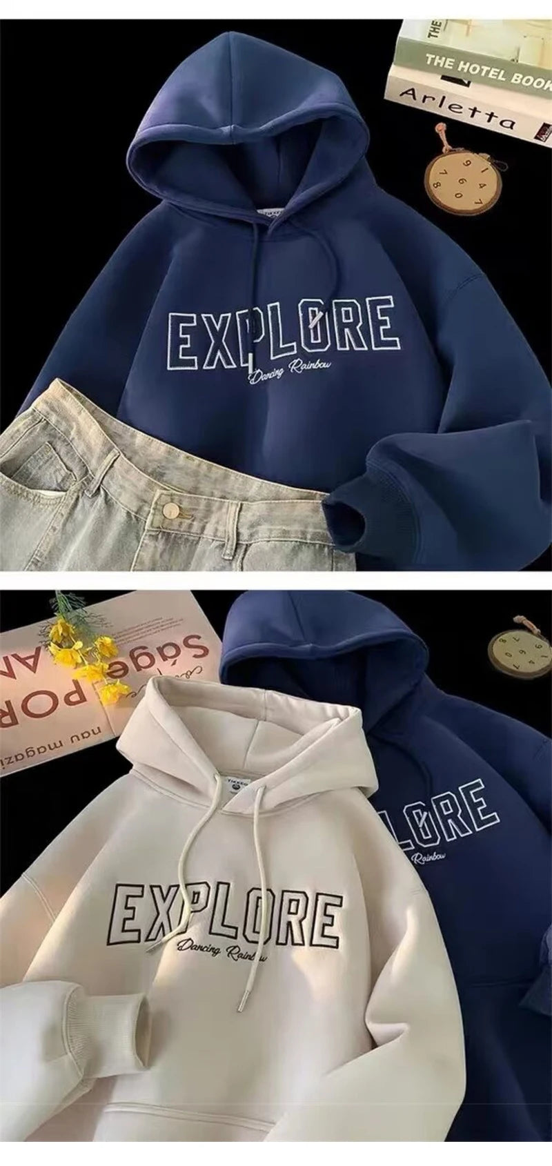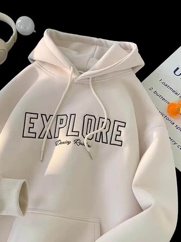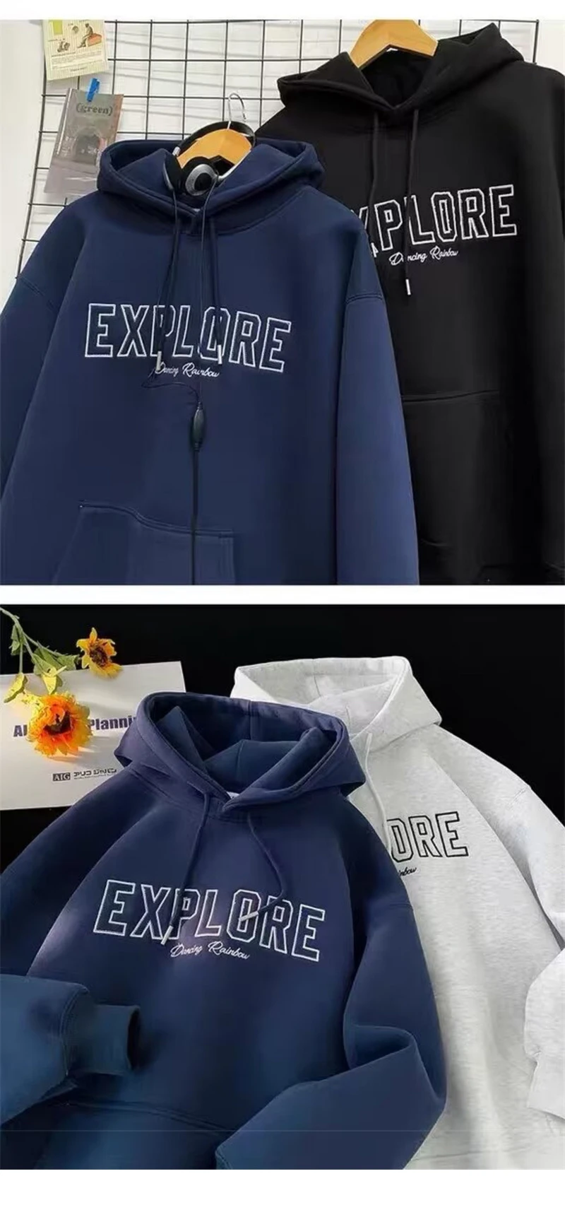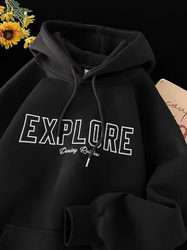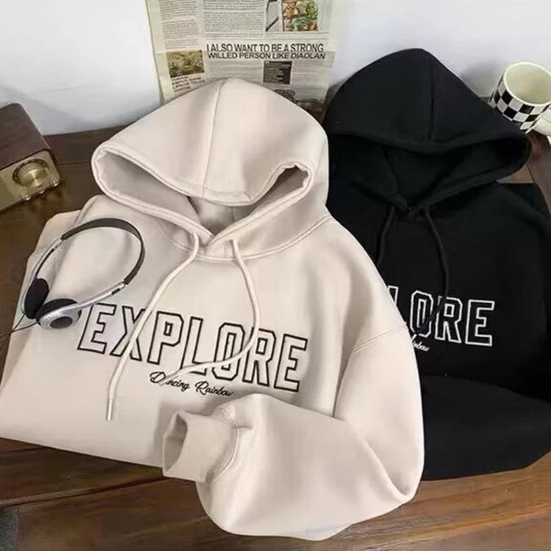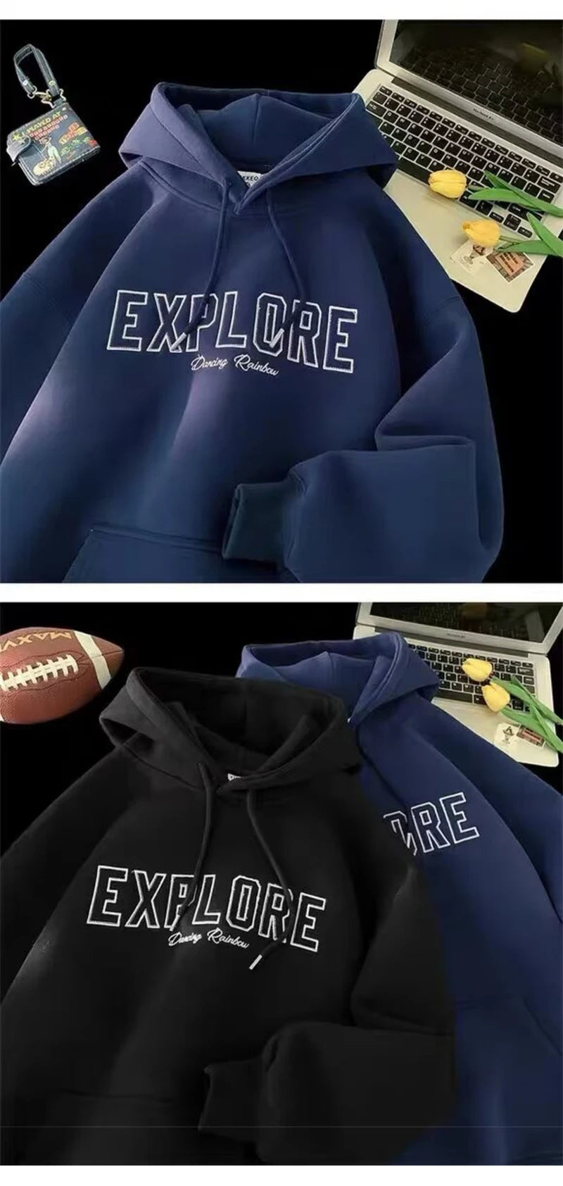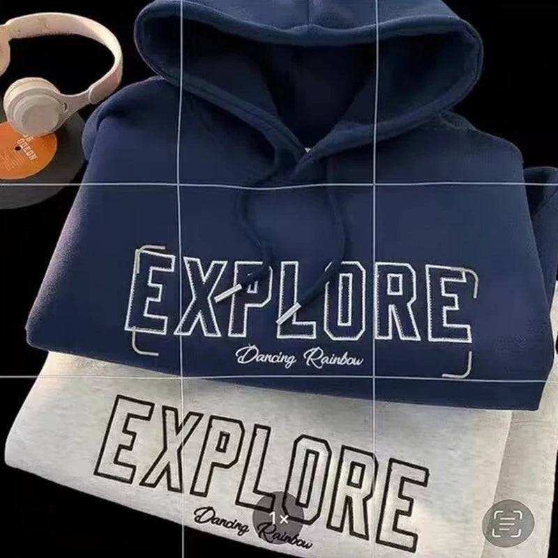 Every VOIDWEAR garment carries a signal, and the EXPLORE hoodie encodes that energy. Crafted from 400 GSM cotton fleece, it balances comfort with conceptual weight. The front print channels VOIDWEAR’s letter series — symbols of presence, discovery, and inner motion. Its washed texture and vanish-mode hood system allow smooth transition between shadow and exposure — a physical metaphor for personal rhythm.