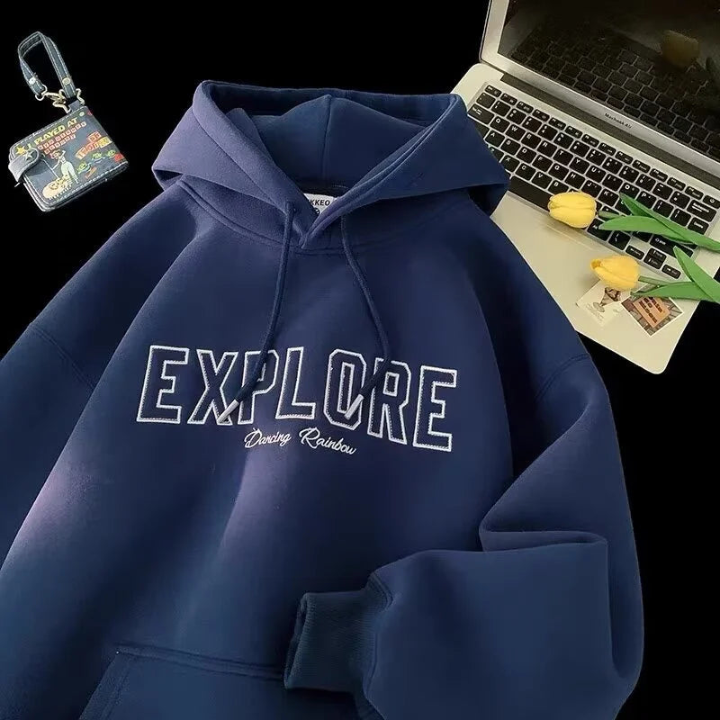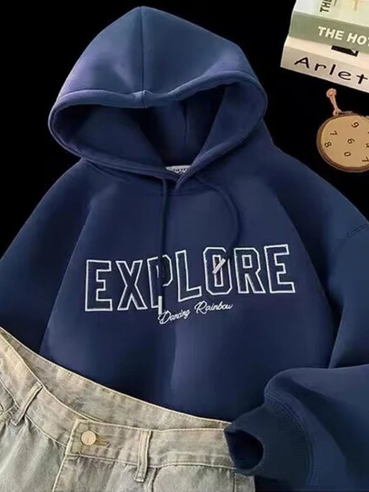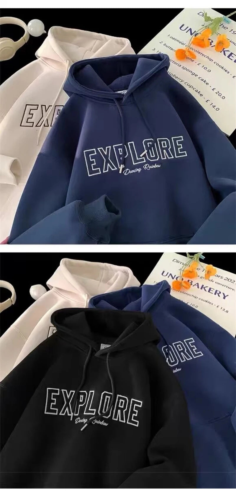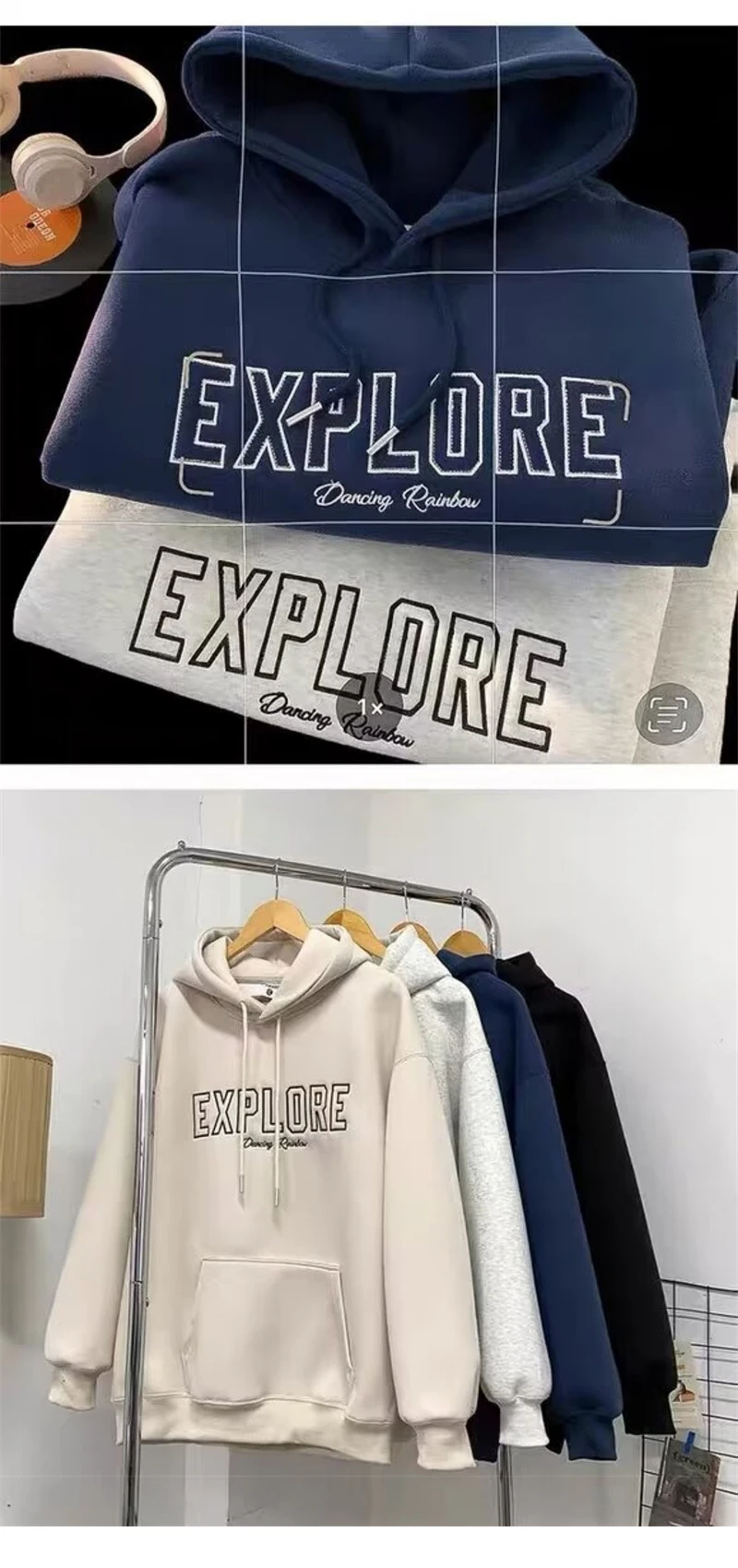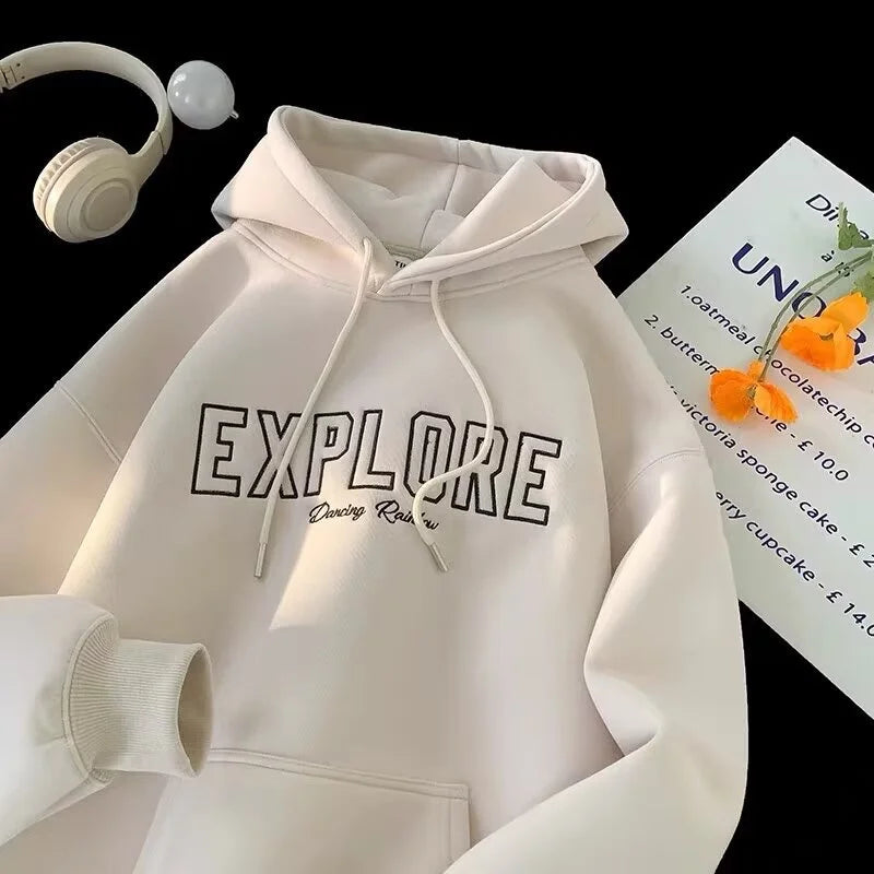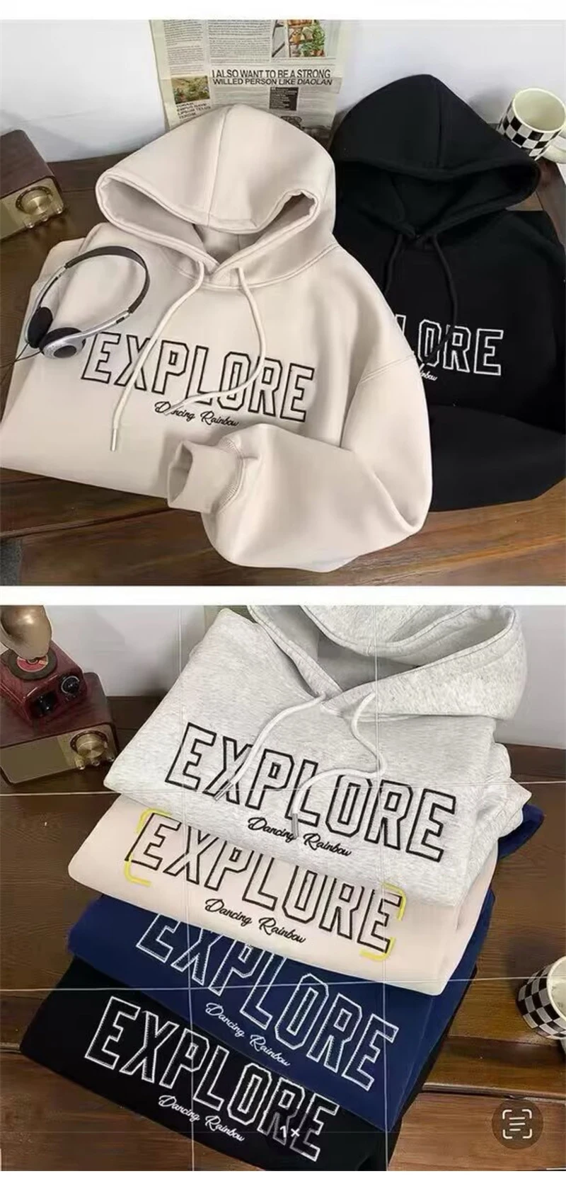 Every VOIDWEAR garment carries a signal, and the EXPLORE hoodie encodes that energy. Crafted from 400 GSM cotton fleece, it balances comfort with conceptual weight. The front print channels VOIDWEAR’s letter series — symbols of presence, discovery, and inner motion. Its washed texture and vanish-mode hood system allow smooth transition between shadow and exposure — a physical metaphor for personal rhythm.