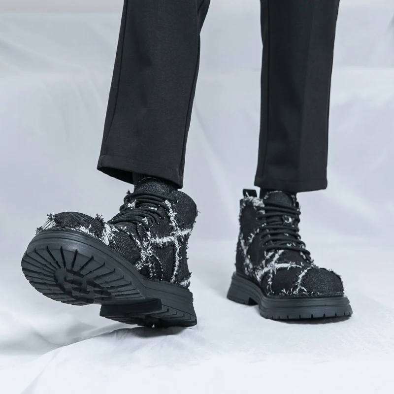 Feel the breathable construction against your skin, supported by a PU insole engineered for comfort and massage effect. The rubber outsole delivers steady grip across streets, offices, or late-night gatherings — carrying the VOIDWEAR ethos of signal, vanish, and shadow-motion.